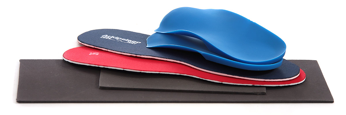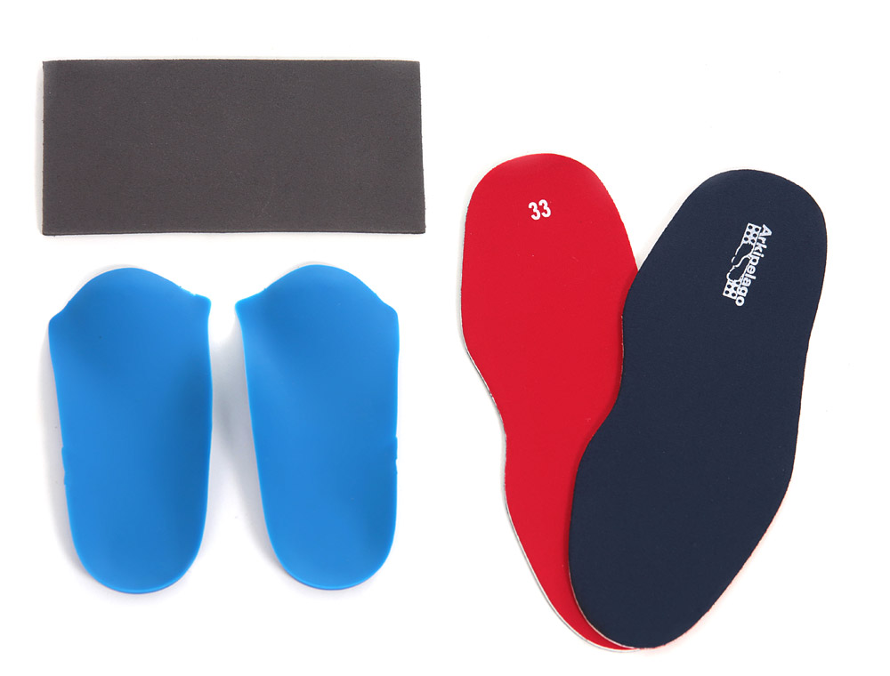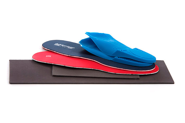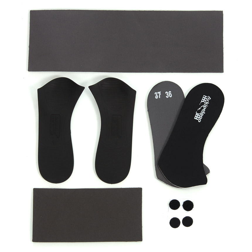 Ao invés de gastar tempo para termo moldar as palmilhas e criar uma base onde serão aplicados elementos e um forro para o conforto do paciente, a Arkipelago criou uma base injetada onde se deverão apenas acrescentar os elementos e colar o forro (já pronto no kit) para conforto.