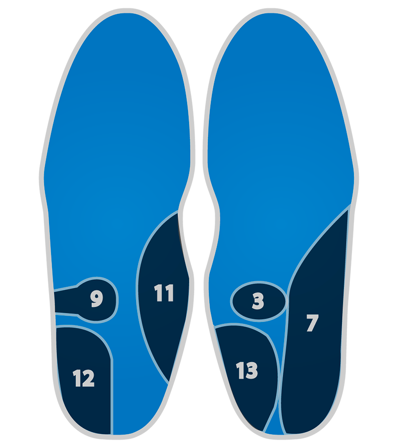 Se confeccionado em Neoprene soft não atua como um elemento e sim como um componente amortecedor de conforto, ao contrário, se confeccionado em E.V.A. de determinada espessura, atua criando um calço compensatório nas discrepâncias anatômicas do MI (Membro Inferior)